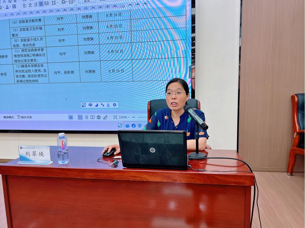 软件学院教学副院长刘翠焕做动员发言,详细解析了学院评估倒计时工作安排时间表。并对学院教师提出三点要求:一是全体教师要高度重视本次的任务安排,做到按时按质按量完成各项任务;二是要发扬团结互助的精神,在关键时期不要计较个人的工作量多少,不打折扣的完成学院、系、教研室交给的各项任务;三是对于磨课环节,全体教师要反复练习,学习经验。