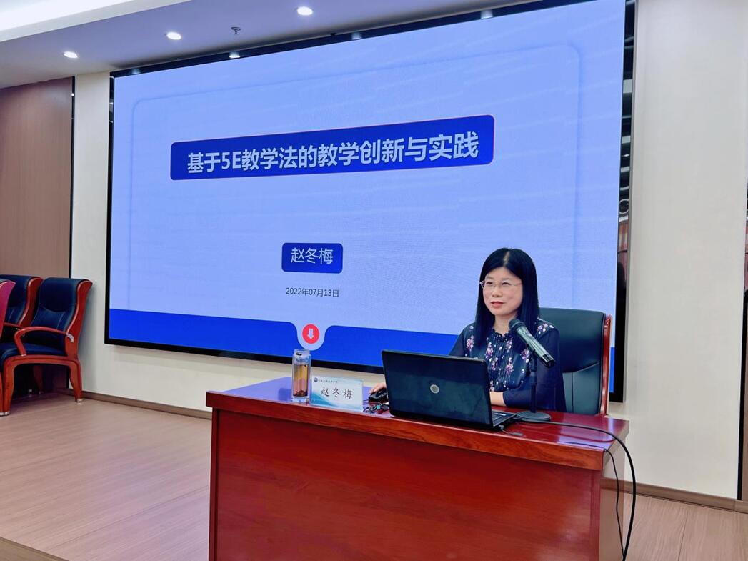 随后,为了提高学院教师互动式教学的实际运用能力,院长赵冬梅同大家分享了题目为“基于5E教学法的教学创新与实践”的主题报告。报告运用案例分析,深入讲解了5E教学法的创新与实践,以实现互动式教学的良好应用。