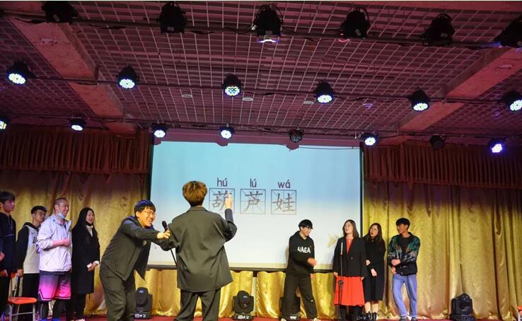在这场综艺秀中《你画我猜》《千里传音》《中华小曲库》《中西合璧》《三人组词》等游戏给整场活动添加了幽默诙谐的元素,使学生们在活动中,放松身心,在氛围下,彼此信赖,共同进步。