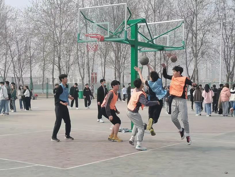 飞转的篮球是队员们运动的轨迹,场下的呐喊是对他们拼搏的肯定!这是耐力与意志的检验,篮球秉着超载自我,挑战自我的目标。奋勇奔跑、跳跃,任汗水流淌湿透球服,可脚步却从不停歇!默契在对抗中提高,友谊在碰撞中升华!这场球赛,酣畅淋漓;这群少年,意气风发!