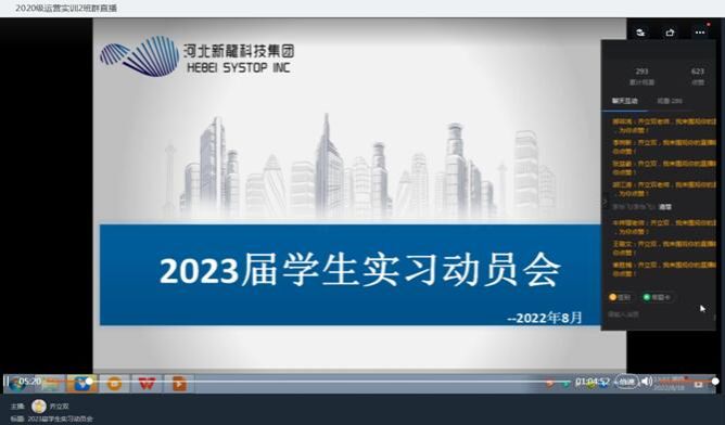 我院2020级特色班学生的实训自7月4日开始,不知不觉中实训已接近尾声,为使学生了解大三阶段实训、实习、论文及实习资料整理等各项工作安排,8月18日,软件学院教质部主任齐立双老师通过钉钉线上形式组织开展2023届学生实习动员会。