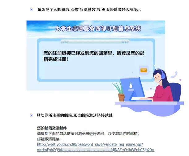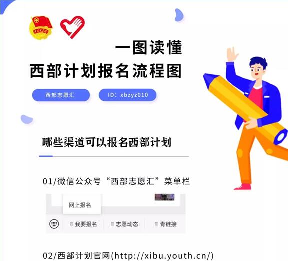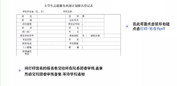 高校毕业生可登录西部计划官网(http://xibu.youth.cn/),在西部计划报名系统进行注册、填写报名表并选择三个意向服务省。下载打印报名表后,经所在院系团委审核盖章,交所在高校项目办(设在团委)审核备案。