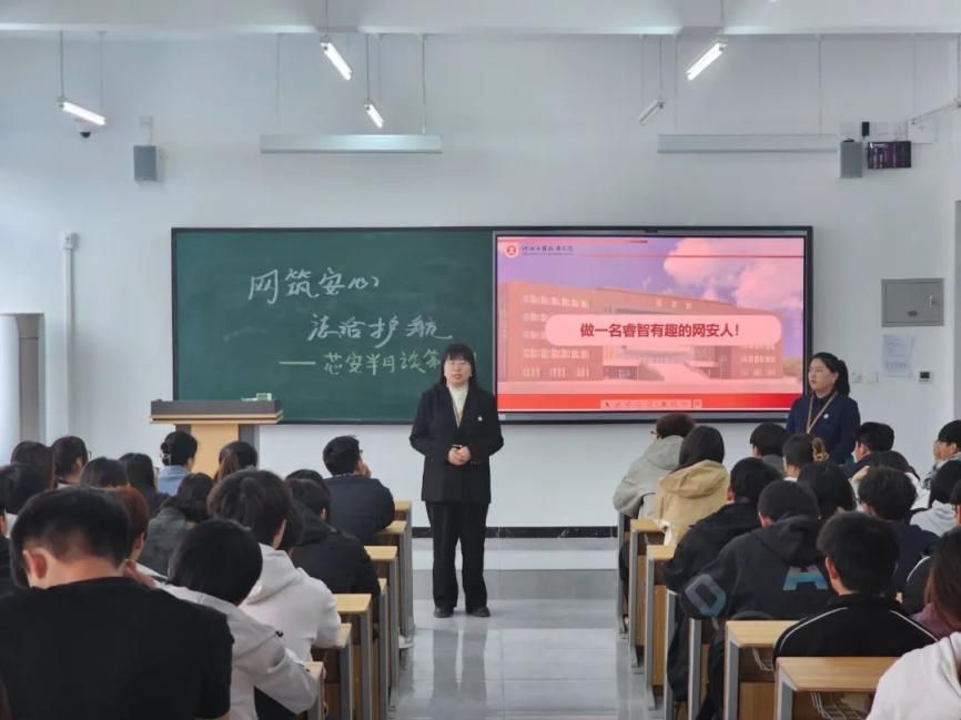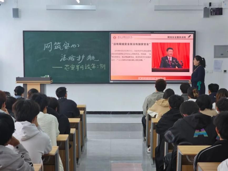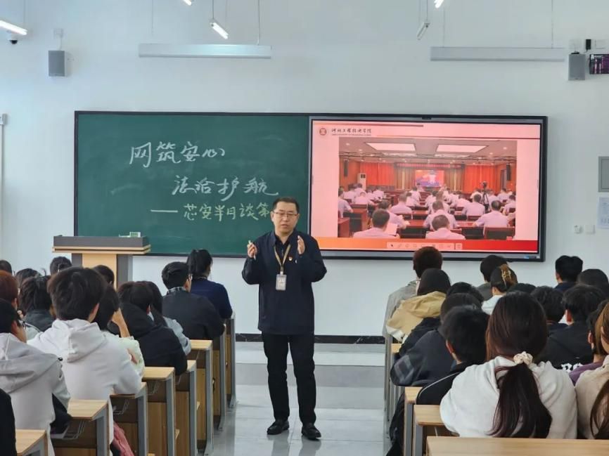 本期活动由马克思主义学院专职教师杨小东与网络空间安全学院辅导员白广平担任主讲。杨小东老师结合自身参与法治宣讲的见闻与体会,为学生从中国法治文化、习近平法治思想的角度讲如何尊法学法守法用法。白广平老师则重点讲授网络安全法,从网络安全国家战略切入,深入解读网络安全之重要意义,详细介绍常见网络安全威胁,并提供了防骗秘籍,指导学生为信息安全“上锁”。