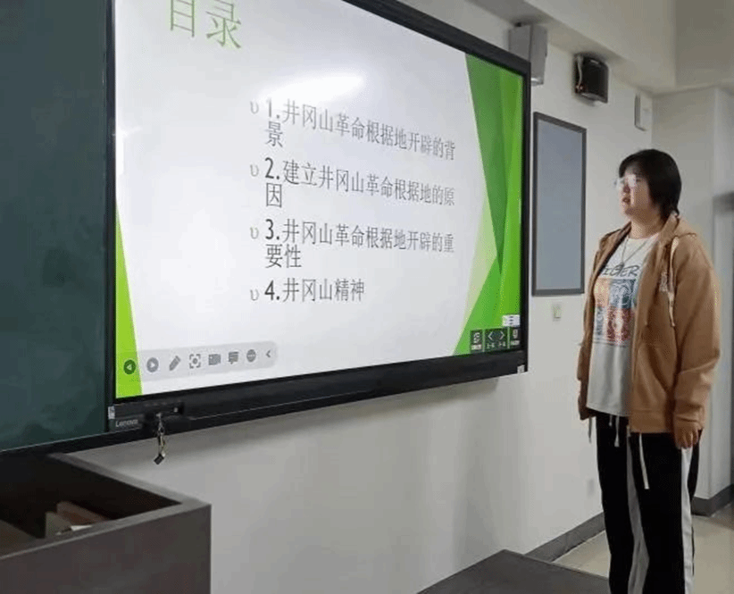 2022级软件工程2班张爽同学给我们讲述了习近平总书记来到江西,看望慰问广大干部群众和驻赣部队,首站就是井冈山。习近平总书记指出:“井冈山时期留给我们最为宝贵的财富,就是跨越时空的井冈山精神。今天,我们要结合新的时代条件,坚持坚定执着追理想、实事求是闯新路、艰苦奋斗攻难关、依靠群众求胜利,让井冈山精神放射出新的时代光芒。”