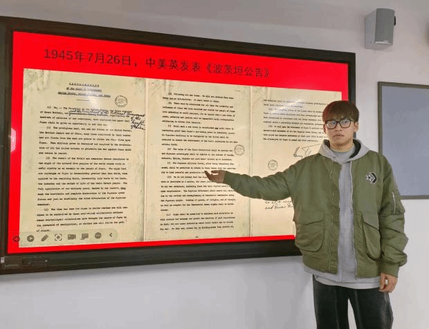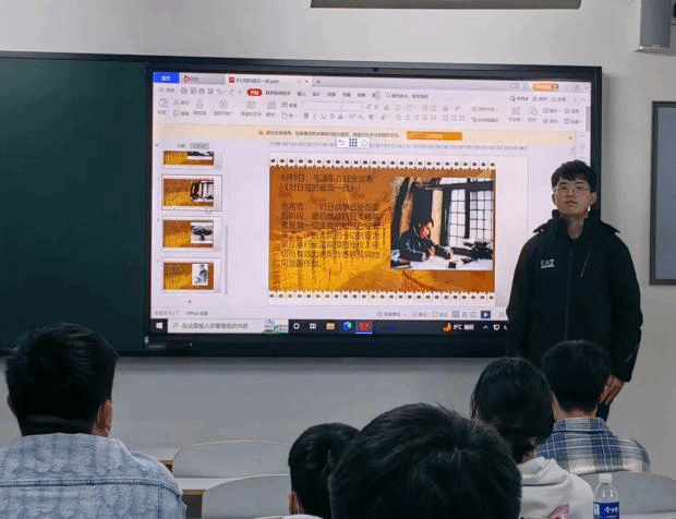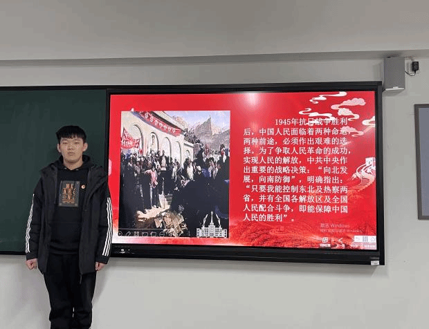 网络空间安全三班的常阔同学和软件工程二班的杨卓晔同学主要讲述了中国人民抗战胜利的重要意义。中国人民抗日战争,是近代以来中华民族第一次取得完全胜利的反侵略战争和民族解放战争,是20世纪中国和世界历史上的重大事件,也是战争史上的奇观。