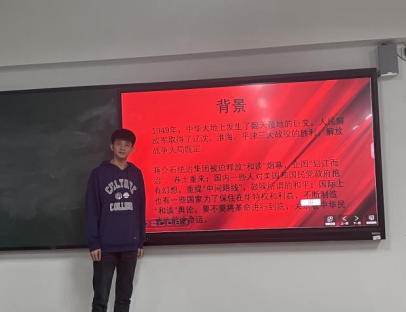2022级软件工程1班李卓龙同学讲述了在新中国开国大典的礼炮声中,人民解放军继续向华南、西南进军,以雷霆万钧之势扫荡残敌。到1949年底相继解放闽南地区和广东大部、广西、贵州、四川,和平解放云南、西康地区。在西北,新疆宣告和平解放后,入疆部队完成千里挺进边陲的壮举。1950年5月,海南岛解放。截至同年10月,经过一年作战,人民解放军共歼灭国民党正规军128万余人。