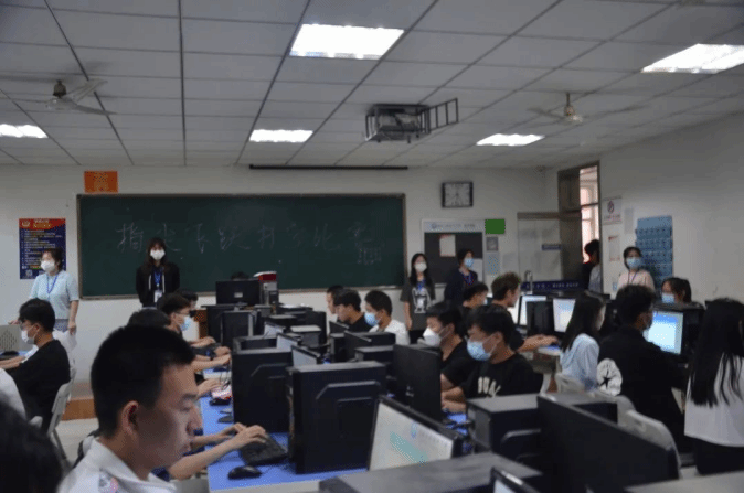 赛前,工作人员提前进场开始布置打字内容,并检查比赛场地及设施调试。参赛人员使用金山打字通进行比赛。比赛开始后,同学们全部进入了状态,目光紧盯屏幕,极其认真并伴随着敲击键盘的声音,教室内充满紧张的气氛,参赛选手们都屏气凝神,全神贯注。