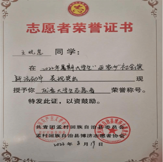 王晓慧同学说:“我们正值青年,能帮忙做一些力所能及的事情,我们义不容辞。我将继续投身于防疫宣传工作,保护家园,为家乡疫情防控工作奉献自己的一份青春力量。”