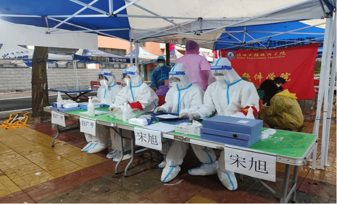 校园门口设立的重重排查与核对让人感到温暖,一进门就有“大白们”对学生们逐个进行核酸核验令人心安,就连离开家乡的焦虑感也缓解了不少。