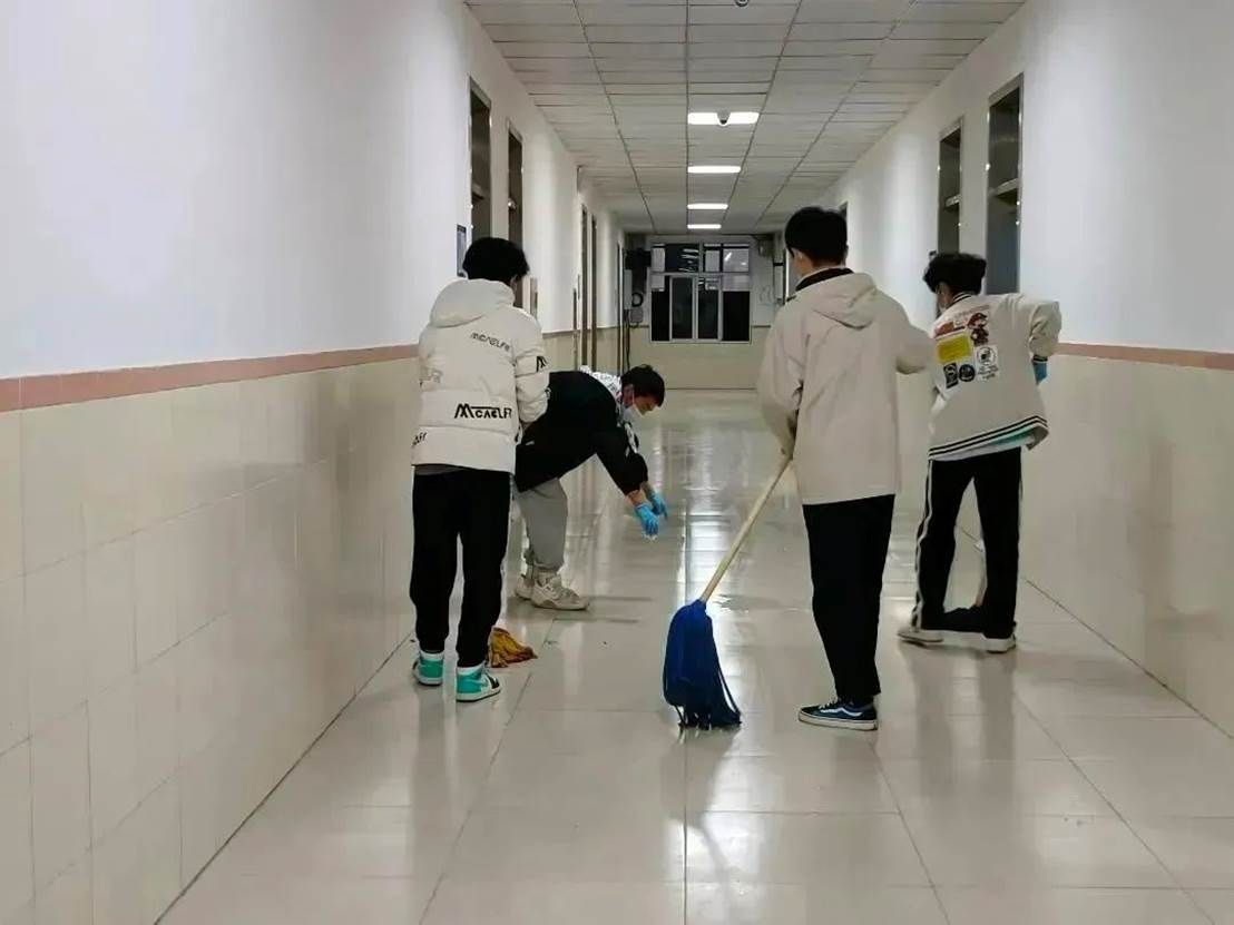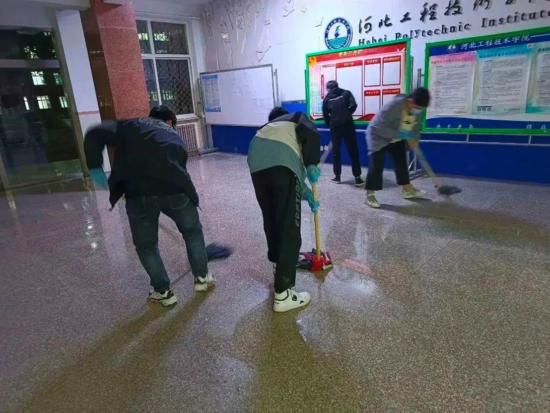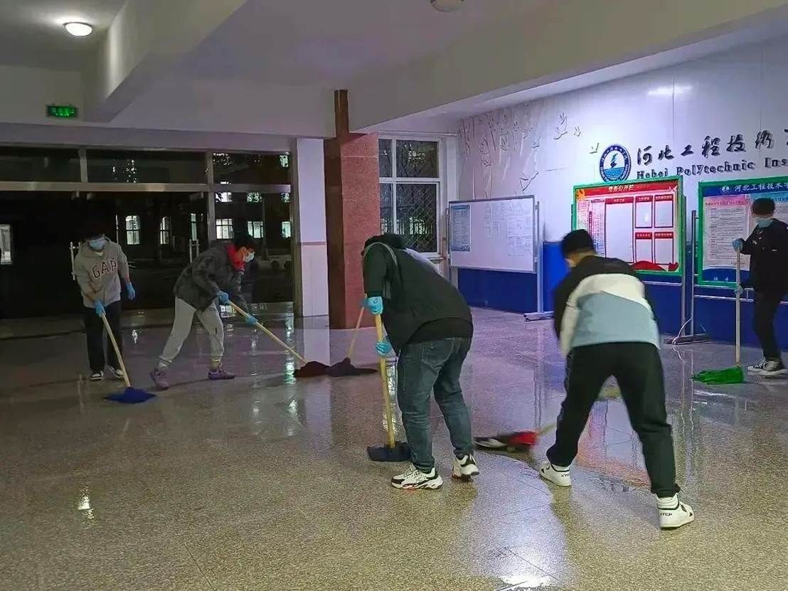 消杀进行中,老师和志愿者们严格按照卫生消毒管理标准规范操作,科学配比消毒液,戴口罩,手拿喷雾器穿梭在学院的各个角落。对教室、楼梯走廊、卫生间等区域进行了全方面细致的消杀,不遗漏每一个角落,确保万无一失,他们用实际行动坚决筑牢疫情防控的第一道防线。