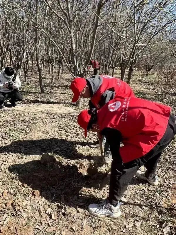 上午10时许,志愿者们来到植树点分散种植树苗。大家三五人一组,挥锹铲土、扶树培土、取水浇灌,配合默契、干劲十足,一片热火朝天的景象。同学们对此次志愿服务活动都充满了热情,希望能在春天留下自己的足迹。