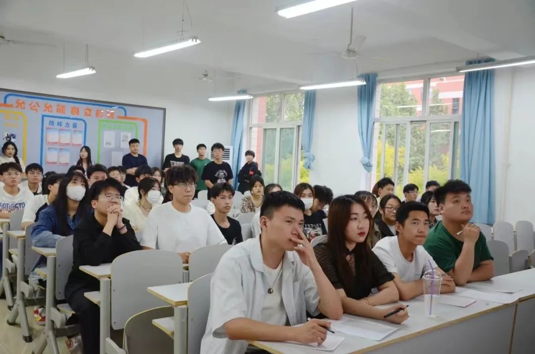 通过一周时间的设计与准备,同学们通过自己丰富的灵感与多彩的展现力,运用多变的线条和丰富的色彩,通过使用制图软件等,设计了一个个富有特别意义的班徽,表达了同学们对自己所在专业的了解,展现了同学们对理想与梦想的追求和渴望。每个班级的代表人依次上台介绍自己及团队的设计灵感,讲解班徽的含义。台下的同学们都聚精会神的听讲。图片
