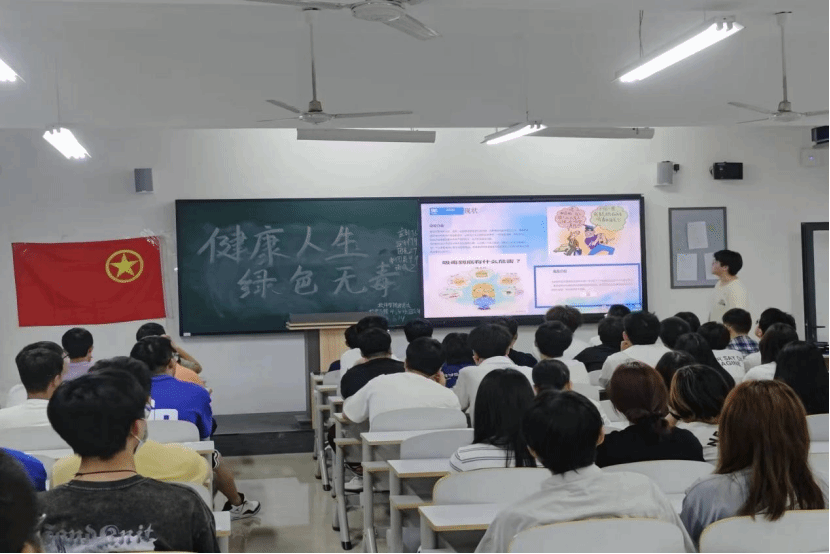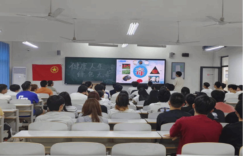 为提醒学生吸毒严重损害身心健康,提高大家防毒,识毒,拒毒的意识;增强健康意识,引起学生对吸毒有害健康的重视;号召学生们一起行动,全力参与到禁毒活动中去,营造一个健康绿色的校园环境。特此软件学院团务部于2023年6月14日组织2022级学生开展了“健康人生,绿色无毒”的主题团课。