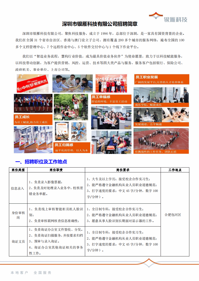 深圳市银雁科技有限公司招聘简章